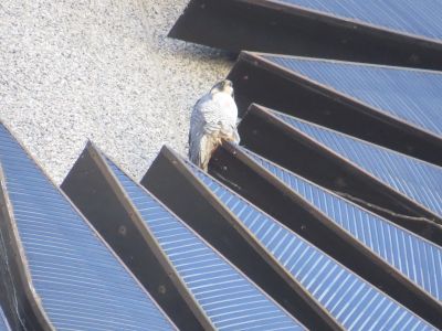 During a Bexar Audubon Society field trip to downtown San Antonio, we found a male Peregrine Falcon on the AT&T building at N. St. Mary's Street and Brooklyn. A female Peregrine Falcon was sitting in the starburst logo of the old Frost Bank Building at 100 W. Houston. The falcons have bands on their legs and are not a mating pair. The male, Triumph, spends the breeding season in Minneapolis. The female, Radisson, returns to Edmonton, Alberta, Canada for breeding. We also found a Yellow-throated Warbler (photo by Mariana Outlaw) on the River Walk at N. St. Mary's and Crockett near Selena's bridge.