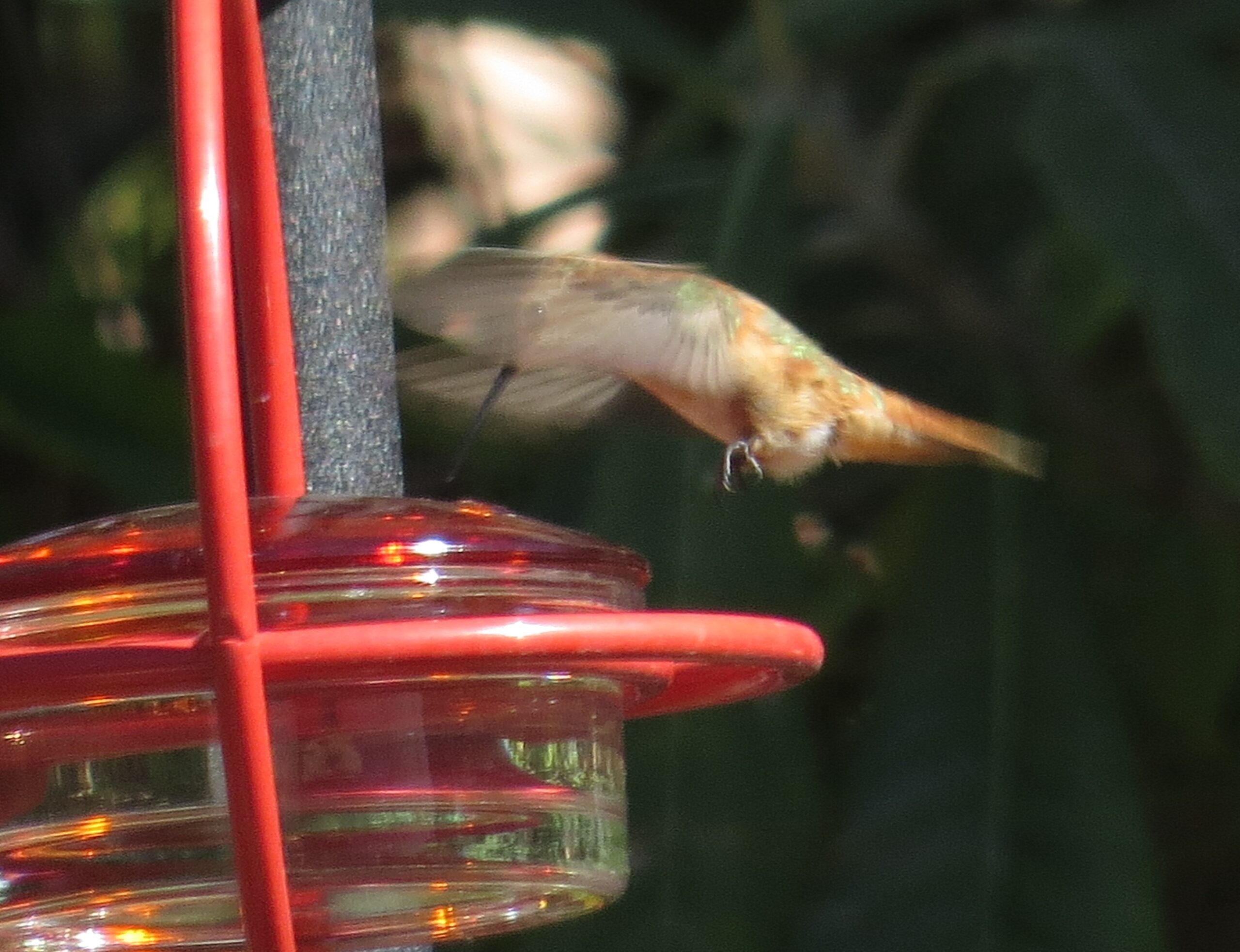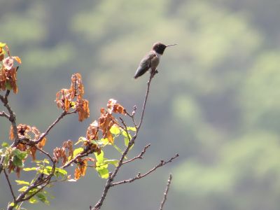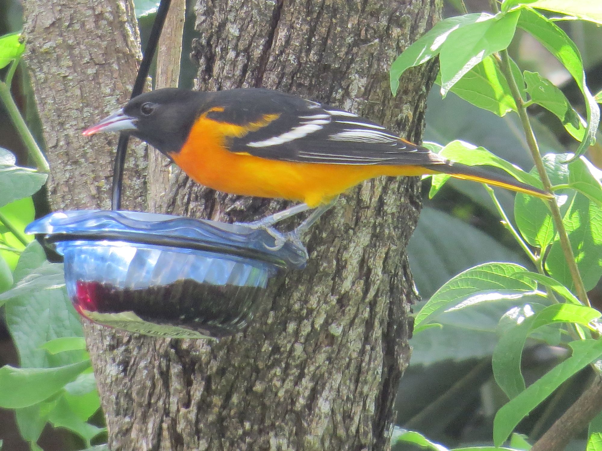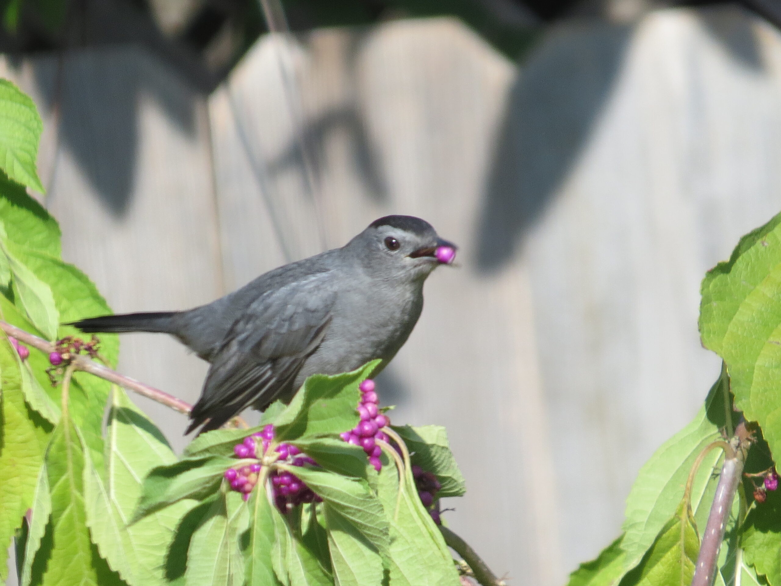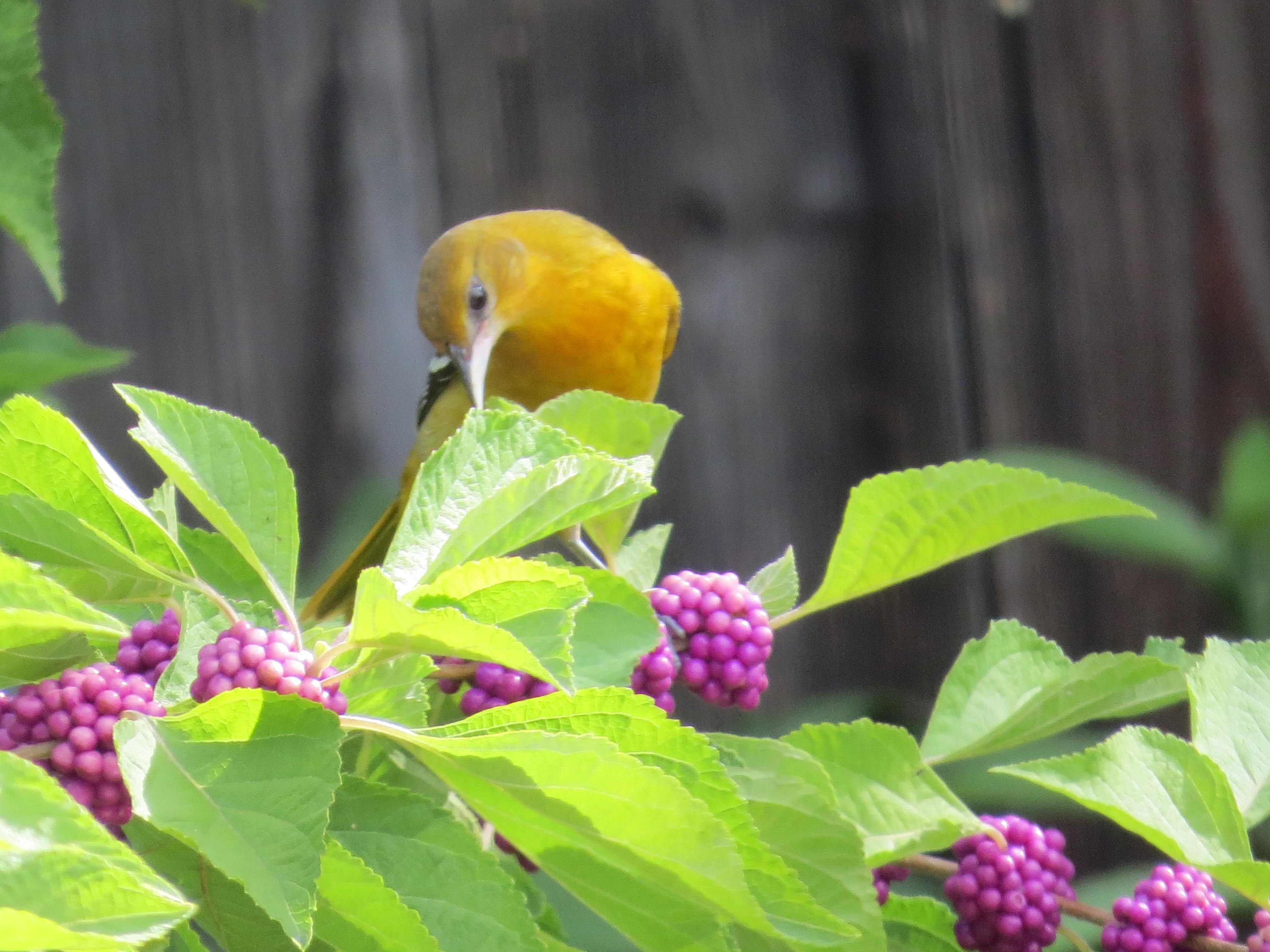 The fall migratory birds began appearing in the backyard in mid-August, with a surprise visit by a male Hooded Warbler. Yellow Warblers, Summer Tanagers, Bullock's Orioles, Orchard Orioles and a Black-throated Green Warbler followed. The week of September 8, a male Baltimore Oriole appeared and stayed for several days, repeatedly visiting a container full of grape jelly. And two Gray Catbirds visited for a week in October to feast on American Beautyberry fruit! The Black-chinned Hummingbirds that breed here are now gone until next March, but entertaining Ruby-throated hummers chase each other around the feeder as they prepare to depart for destinations to the south for winter.