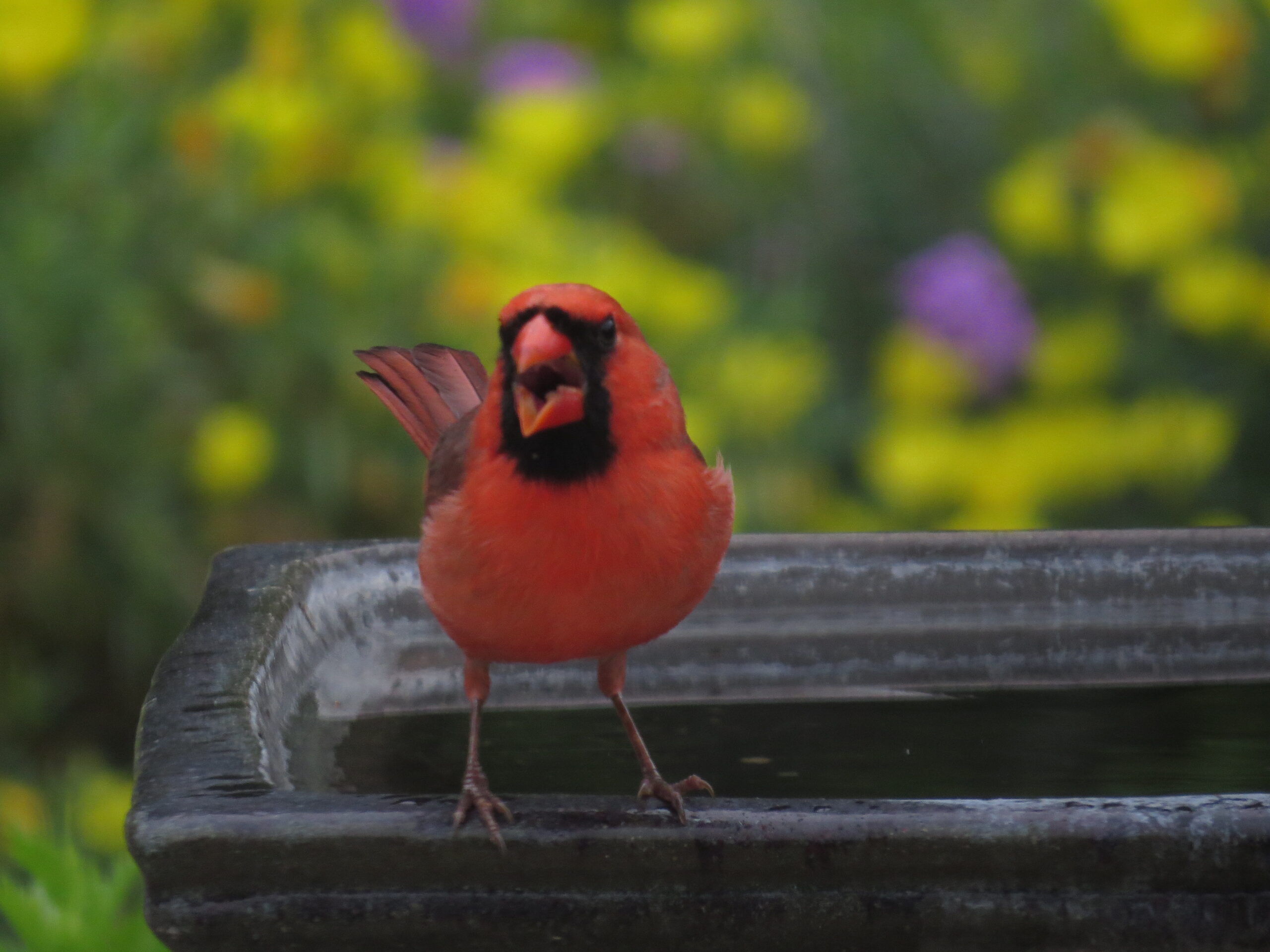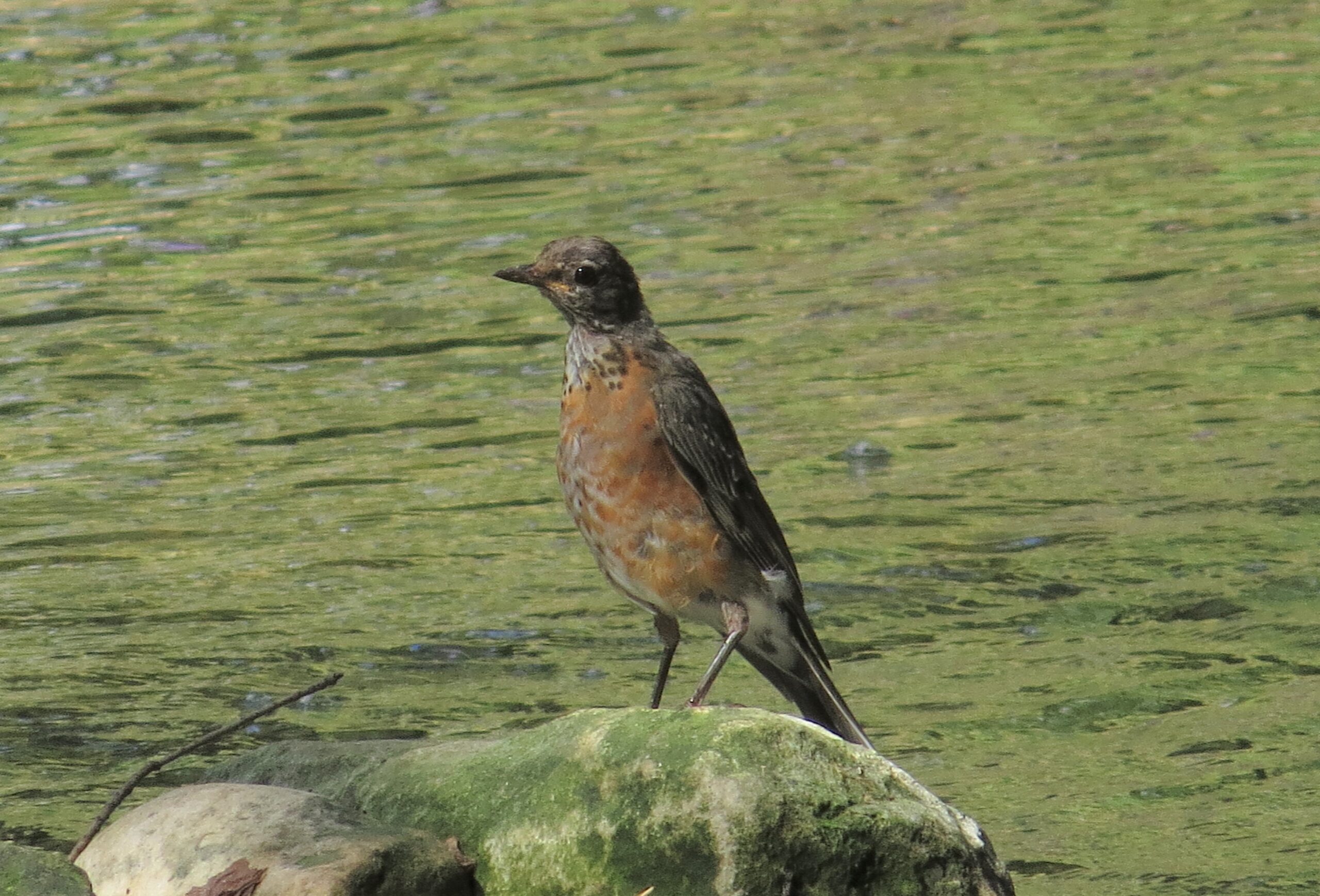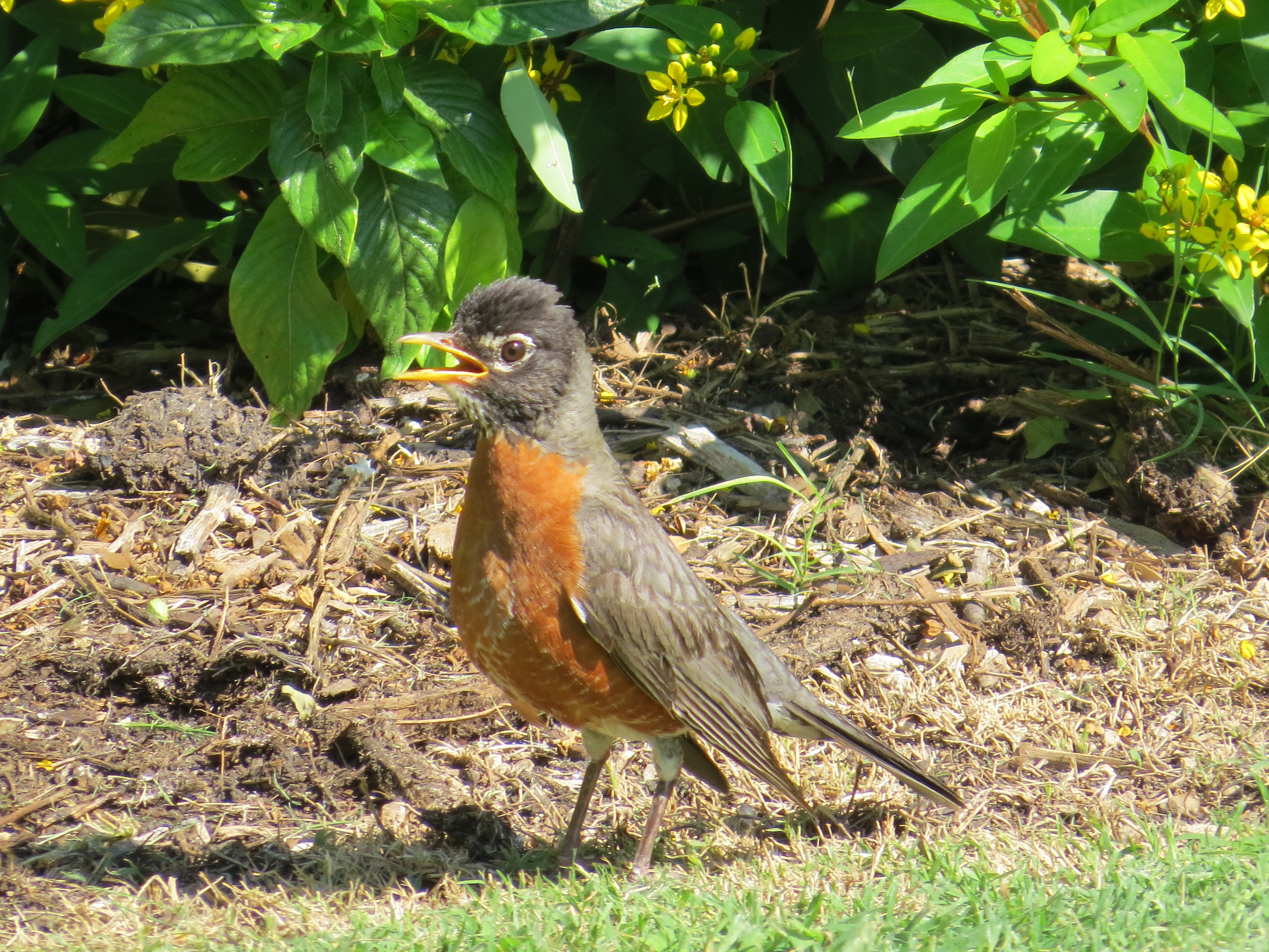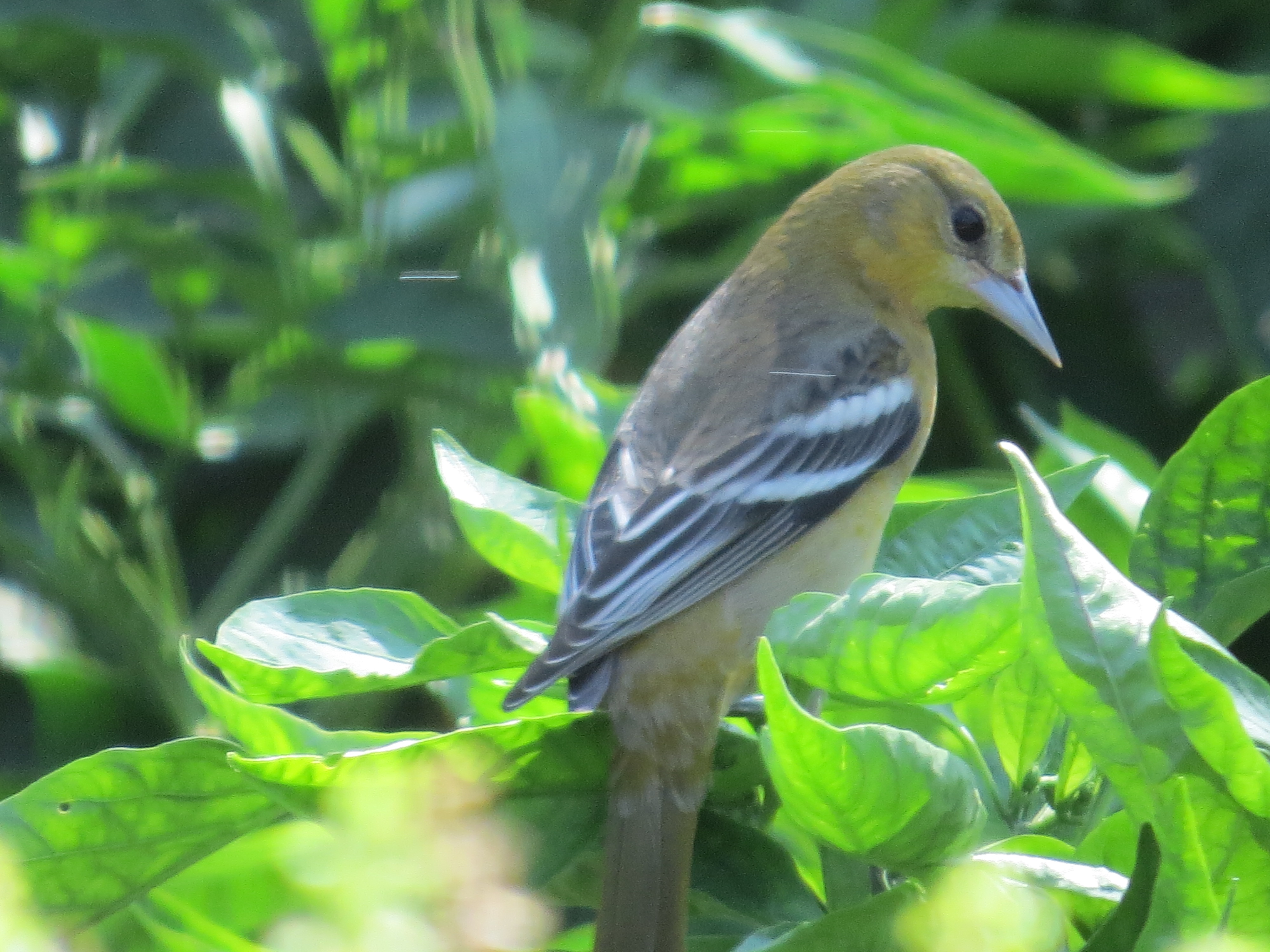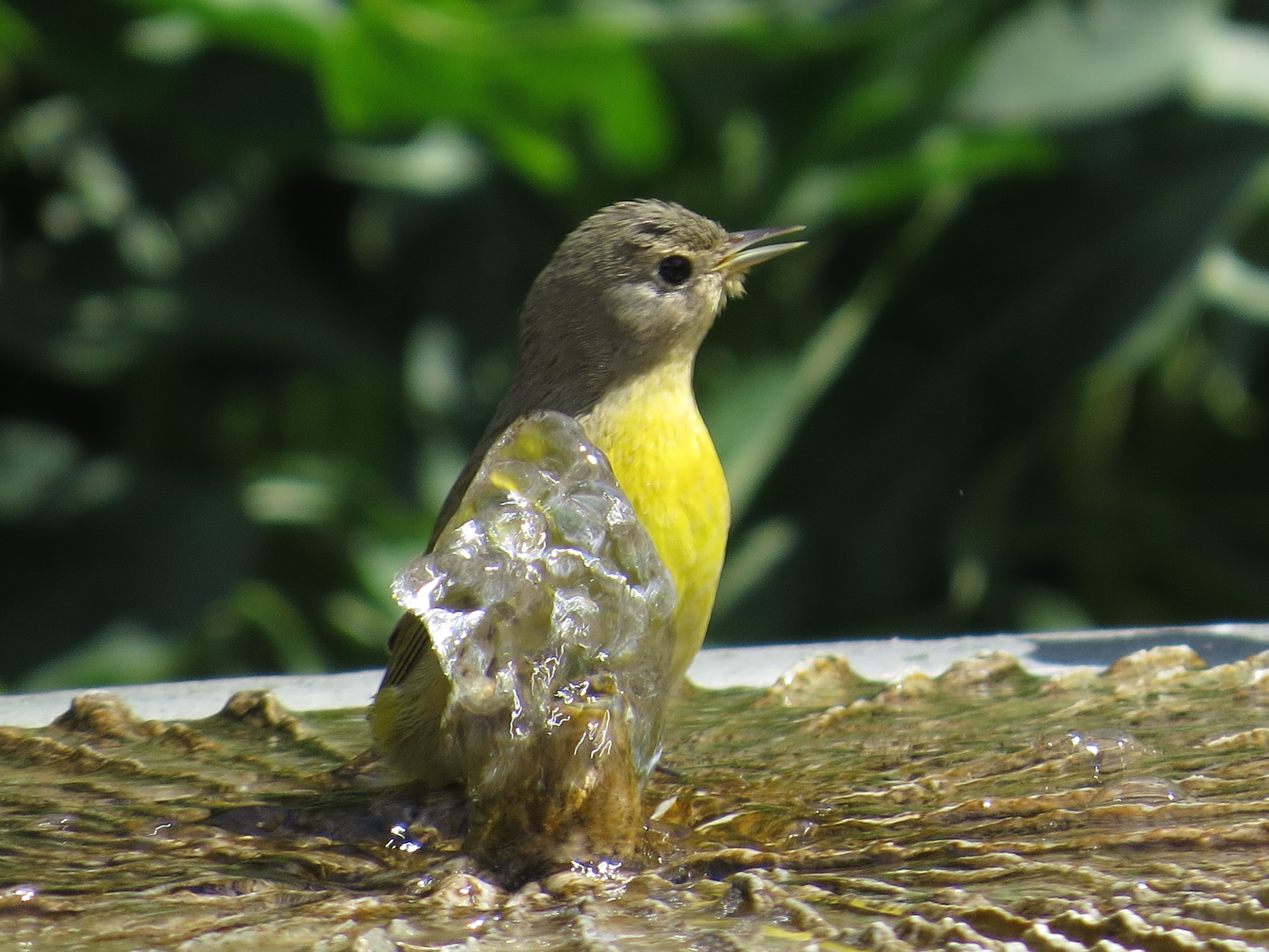 Following a very rare afternoon rain shower that arrived with a "cold" front on a 100 degree day, several migratory birds appeared in the backyard.