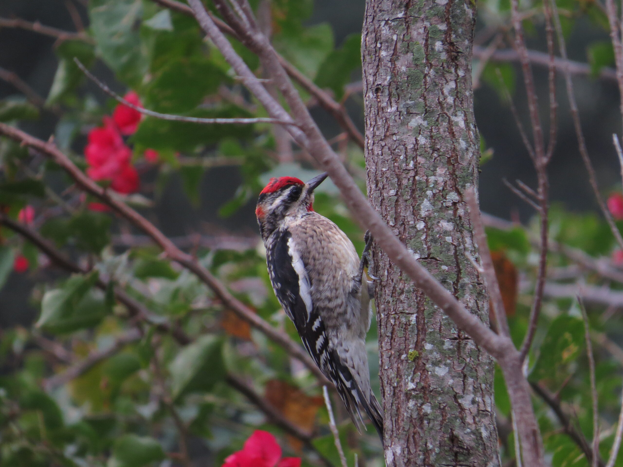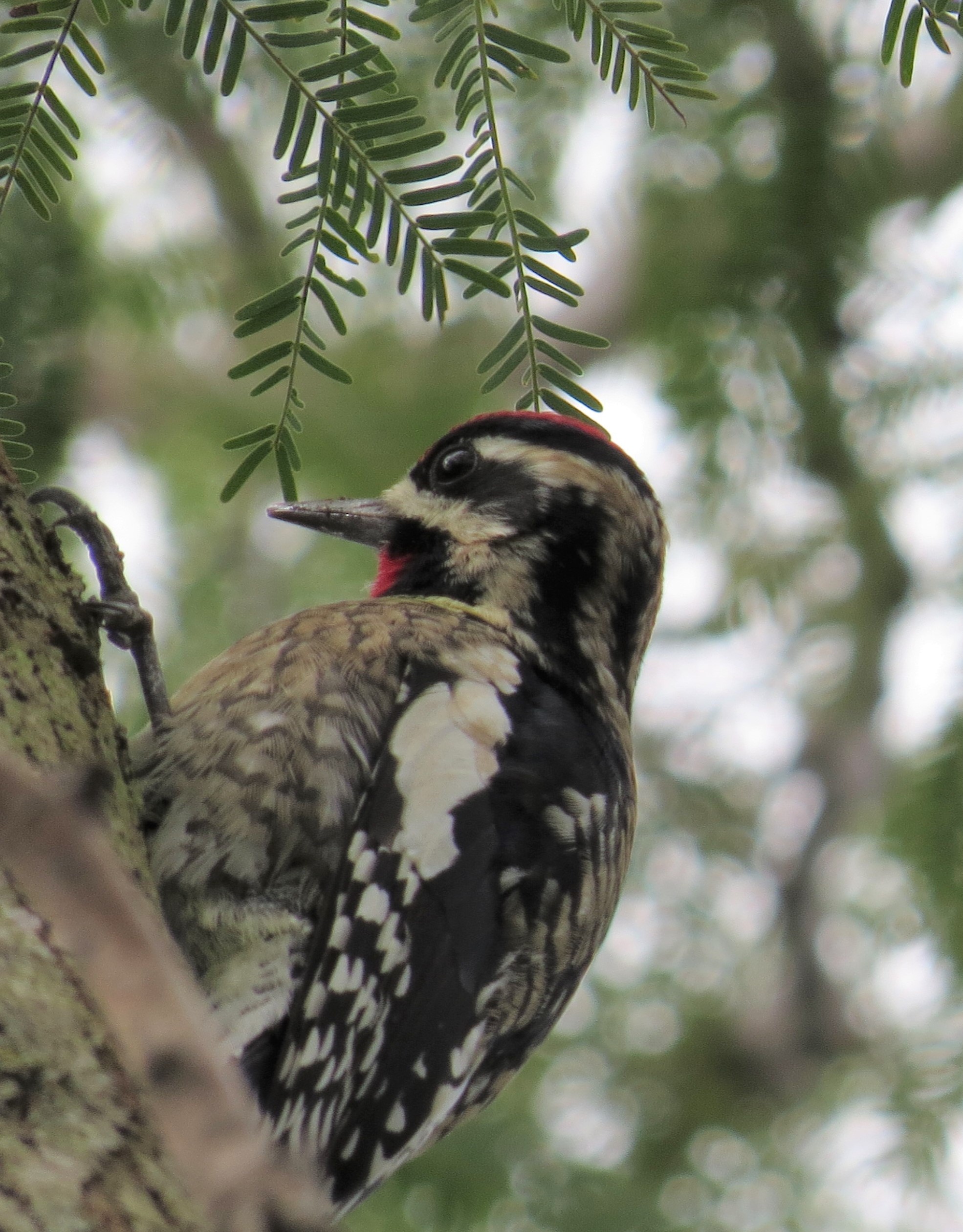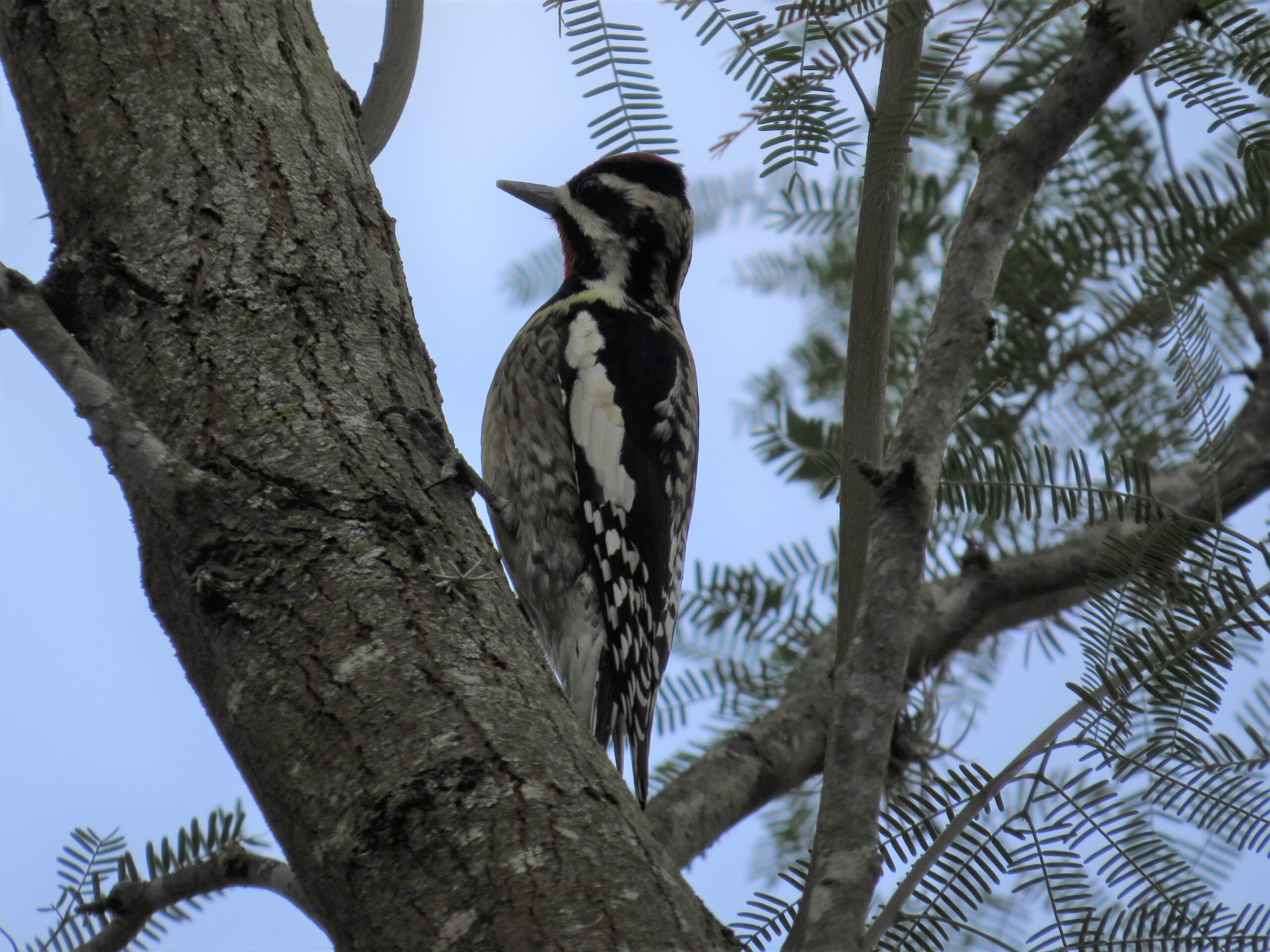 The presence of a Red-naped Sapsucker drew big crowds at the San Antonio Botanical Garden for several weeks from late January to mid-February. The young female bird was first identified on January 25 and last seen on February 22. She was frequently seen on a Thornless Mesquite tree, which is the same tree a Yellow-bellied Sapsucker later visited for many days.